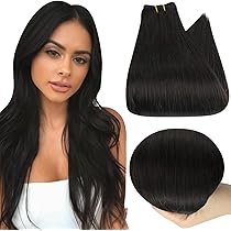 Amazon Com Full Shine Sew In Weft Hair Extensions Weft Hair Extensions 105 Grams Remy Human Hair Jet Black Hair Wefts Silky Straight Weave Bundles Natural Extensions Brazilian Real Human Hair 24